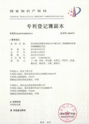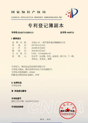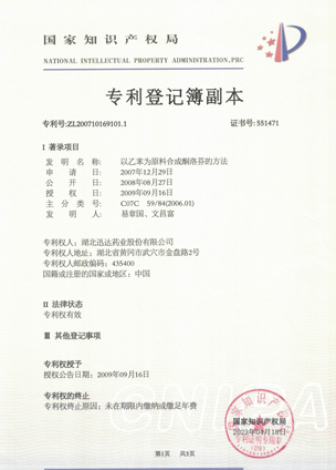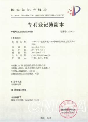 公司擁有一支高素質科研隊伍,具備專業(yè)而高效的研發(fā)能力。近幾年,共取得科技成果30項,其中9項獲國家發(fā)明專利,2項獲湖北省科技進步獎,開發(fā)新產品8個,綠色合成、手性合成和催化等技術引領行業(yè)發(fā)展。主要銷往歐美、日本、韓國、中東、印度等40多個國家和地區。